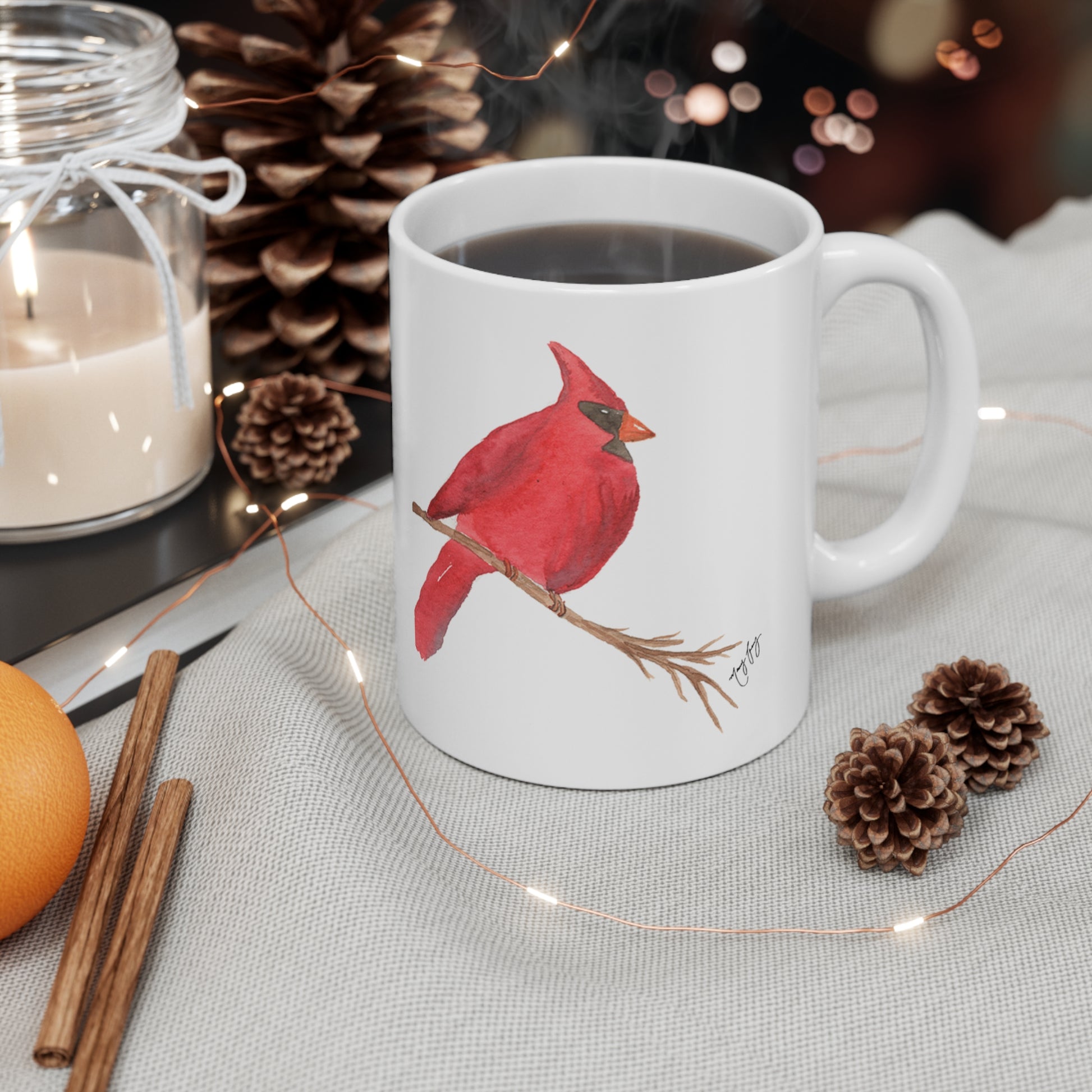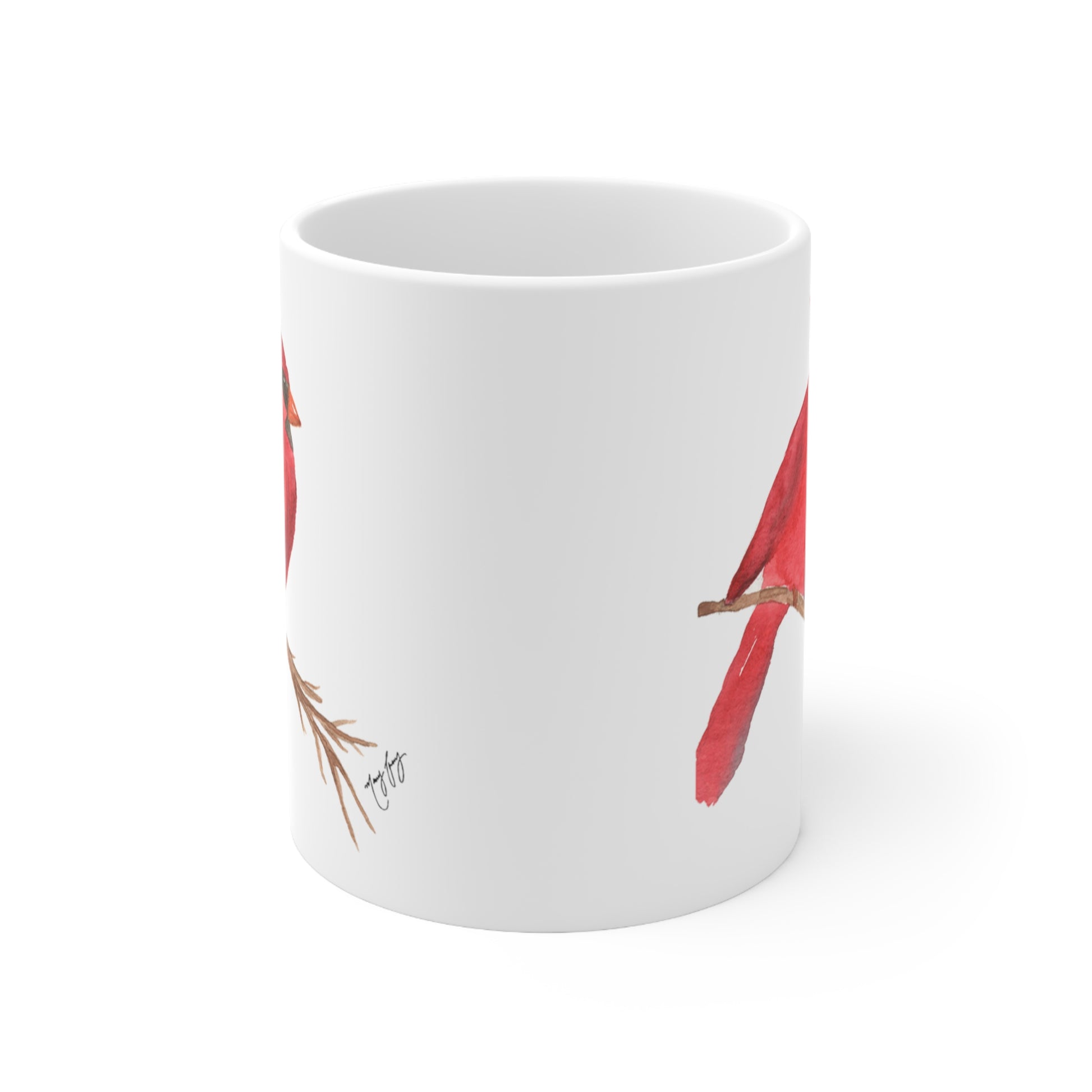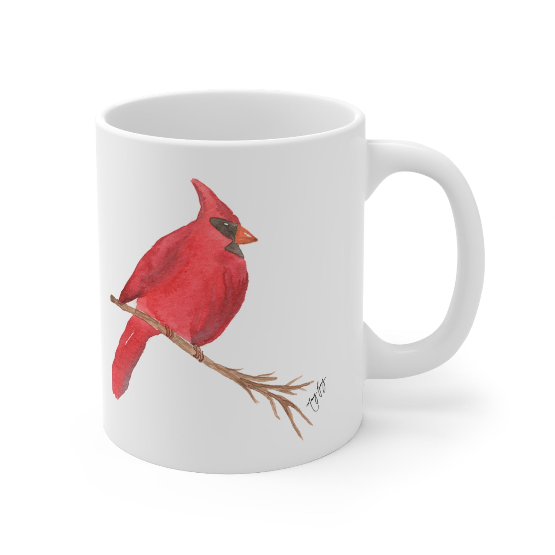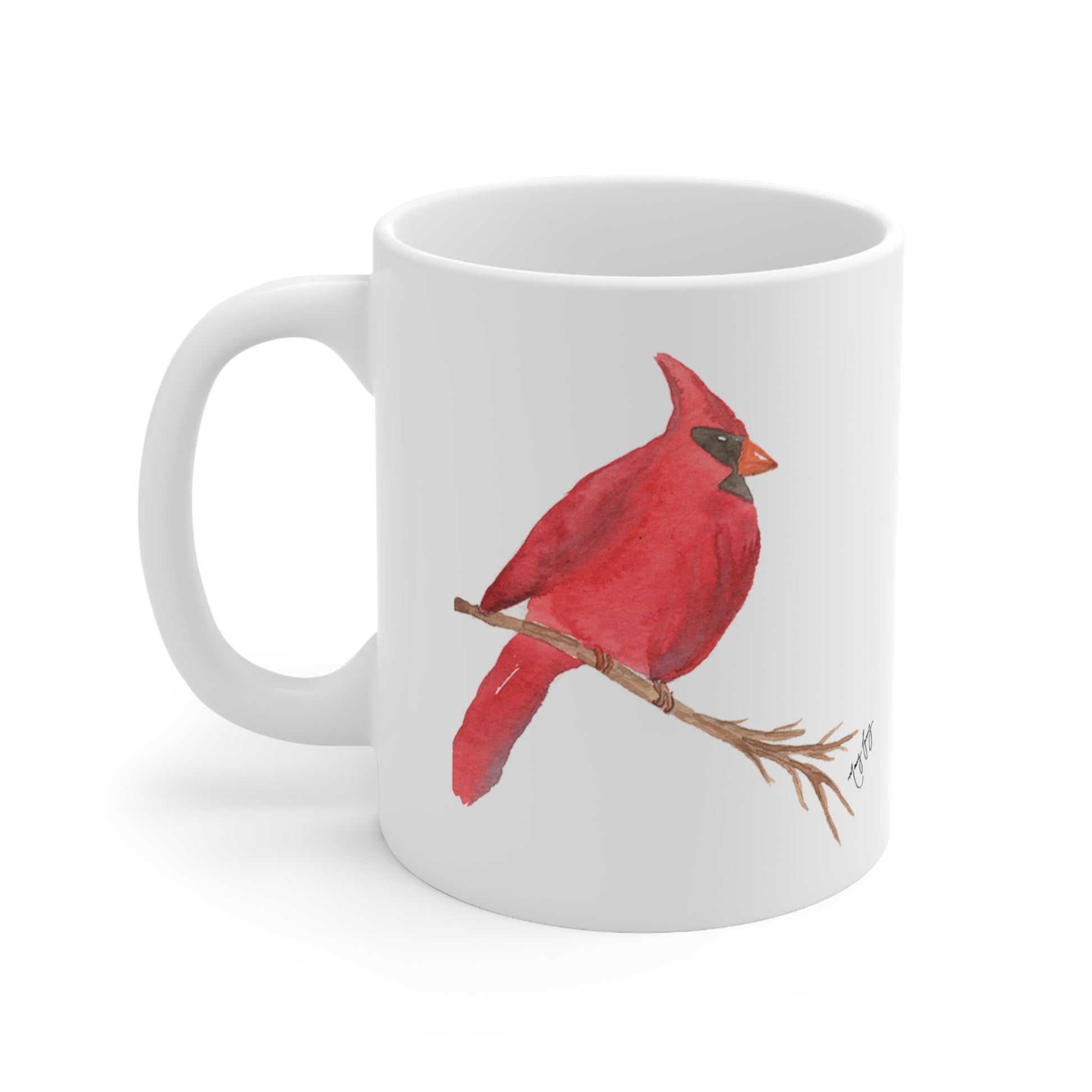 Warm-up with a nice cuppa out of this customized ceramic coffee mug. It’s BPA and Lead-free, microwave & dishwasher-safe, and made of white, durable ceramic in 11-ounce size. Features Mary Frey's watercolor "Red Cardinal" painting.